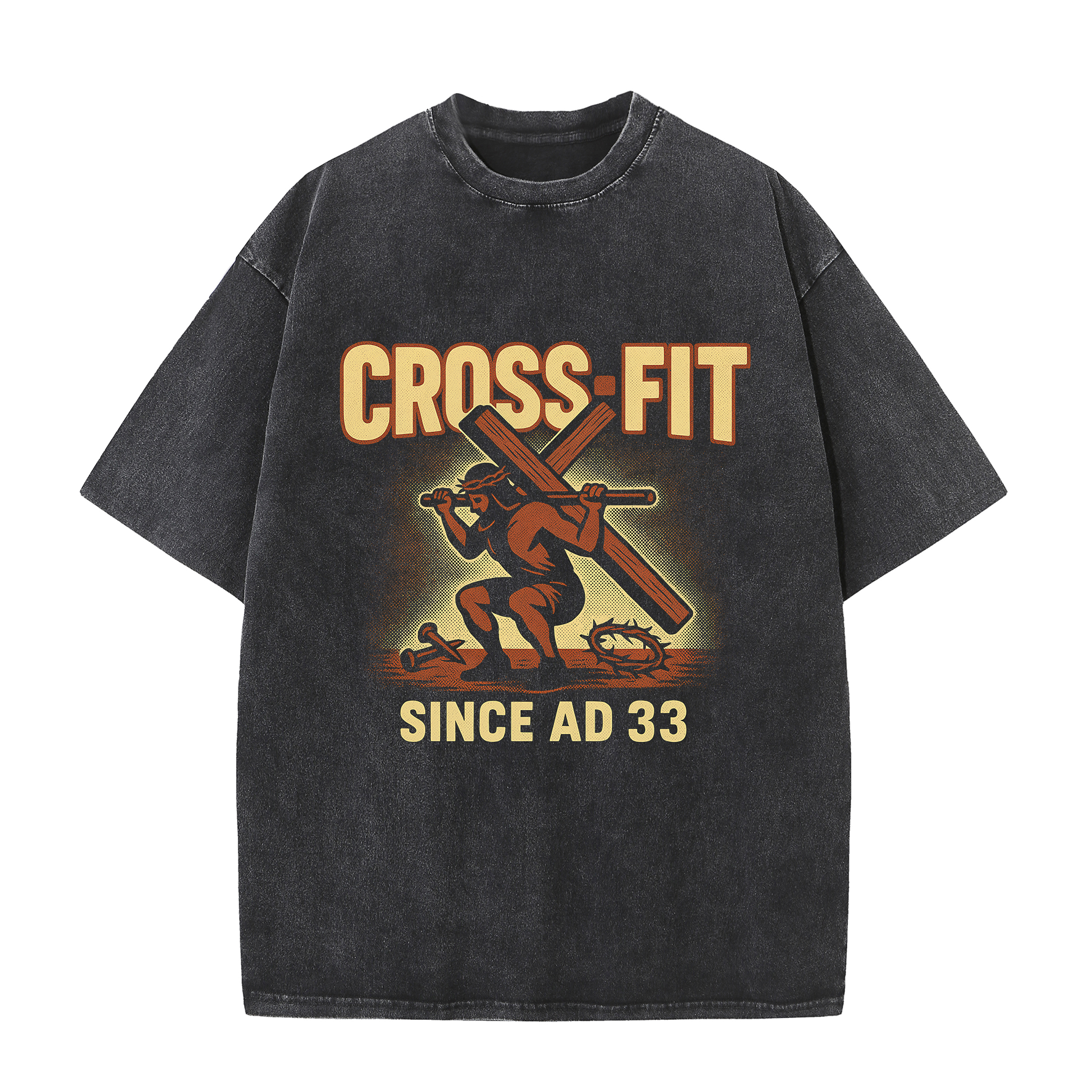 “CROSS-FIT Since AD 33” Vintage Faith and Strength Graphic T-Shirt
