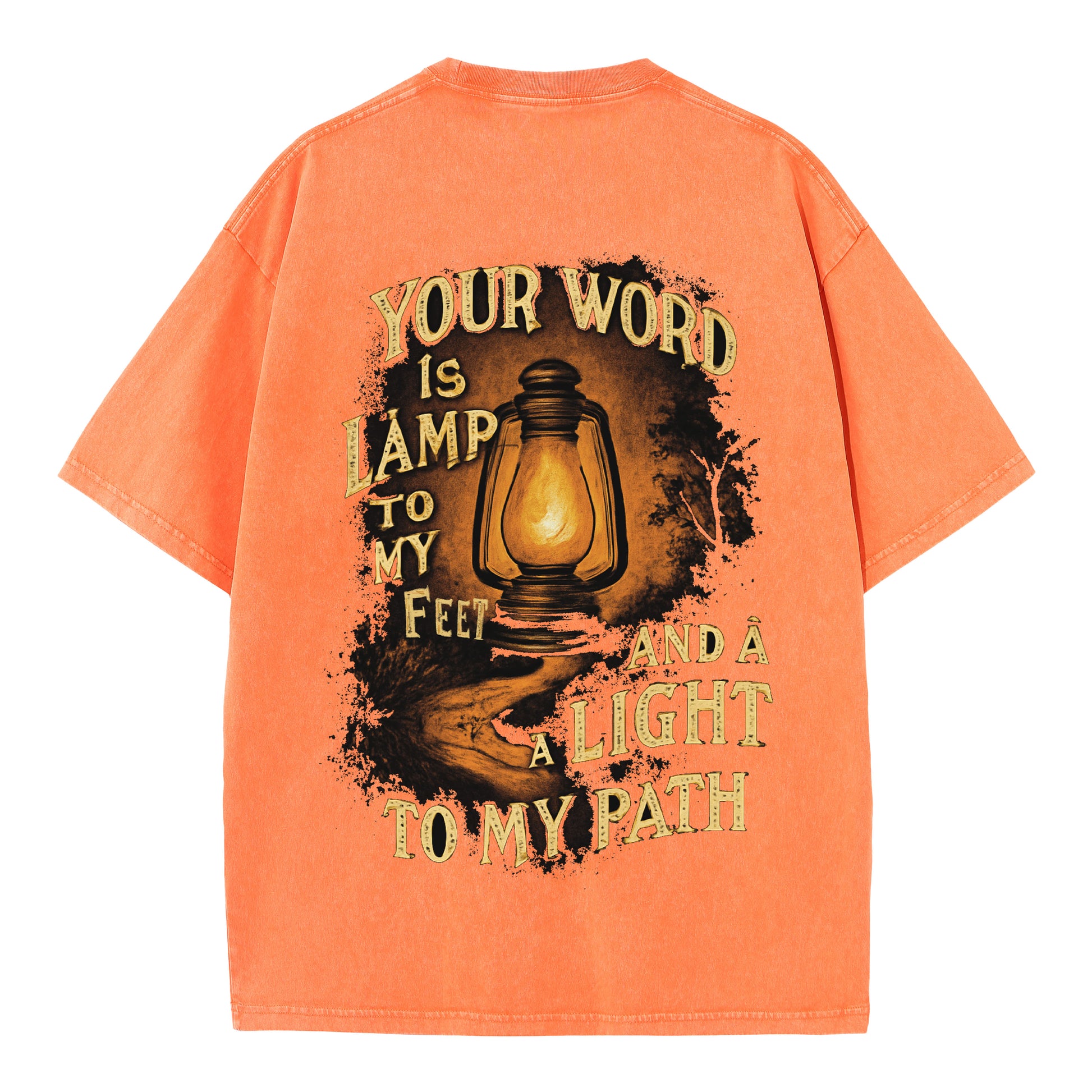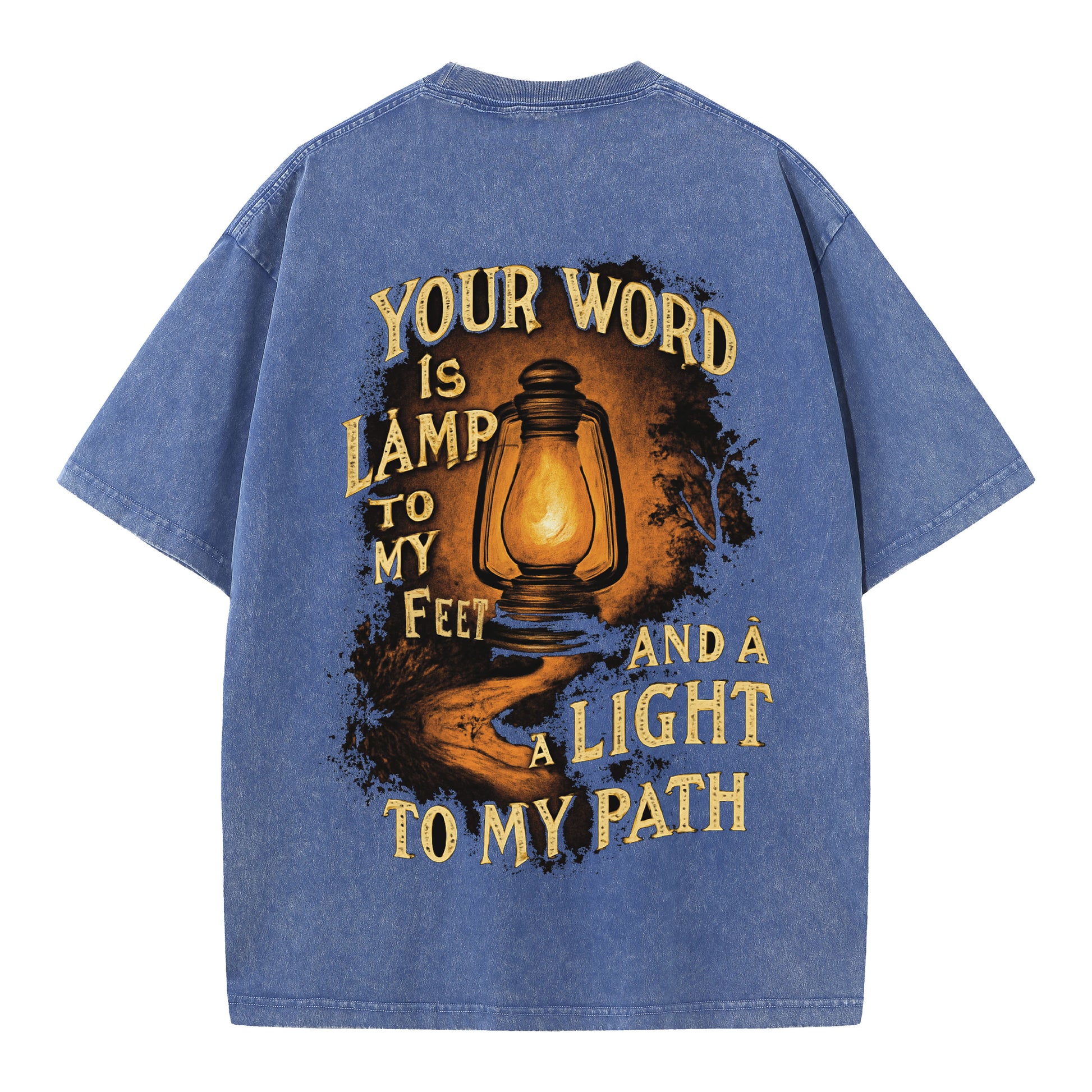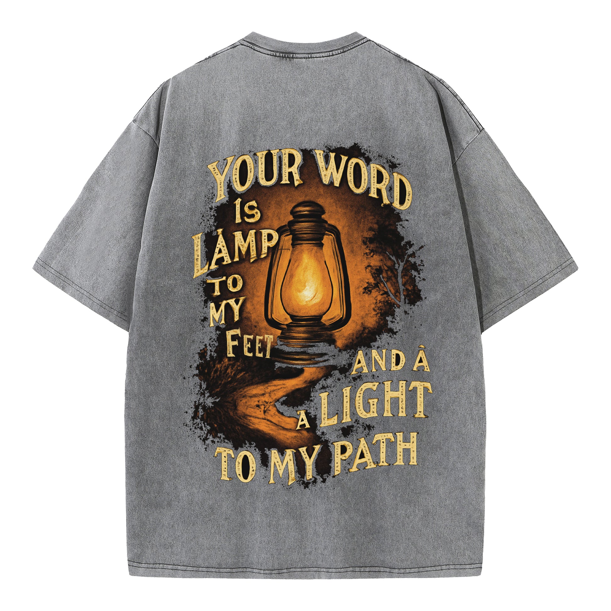 Step into the light with our Light Your Path Lantern T-Shirt. This artistic design features a vintage lantern illuminating a path, accompanied by the inspirational message, "Your Word is a Lamp to My Feet and a Light to My Path." Perfect for those who seek guidance and clarity in their journey.